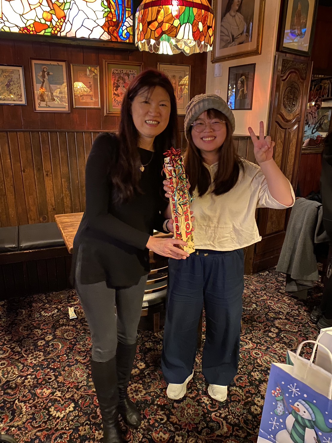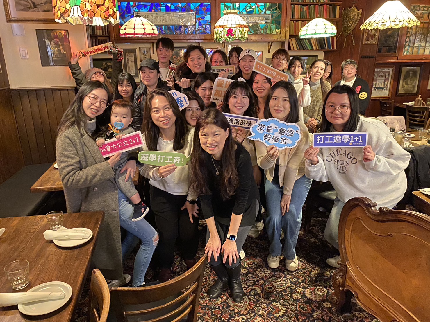 睿達多倫多Family大集合,12月15日當天,從大多倫多地區,四面八方來到市中心的 The Old Spaghetti Factory 餐廳,有的學生已經在當地就業多年,有的完成護理師課程在當地醫院上班,還有正在多倫多語言學校遊學的,遊學打工的學生,還有已經結婚的,還有有小孩的...... 感謝加拿大最大的ILAC語言學校代表熱情出席,校內的台籍顧問這麼多年來,在當地協助與照顧我們在ILAC讀書的每一位學生,再次感謝,讓我們放心,學生家長安心。 聖誕大餐我們買單的開心,只想用心鼓勵每位努力的睿達多倫多學員,聽到一聲愛琳姊謝謝妳,對我們來說,就是無比的喜悅與莫大的獎勵。 謝謝這群努力且善良的學員們,你們在海外的用心,我們都看到了,請繼續帶上你們滿滿的熱血,為未來努力打拼。加油! 辛苦了!