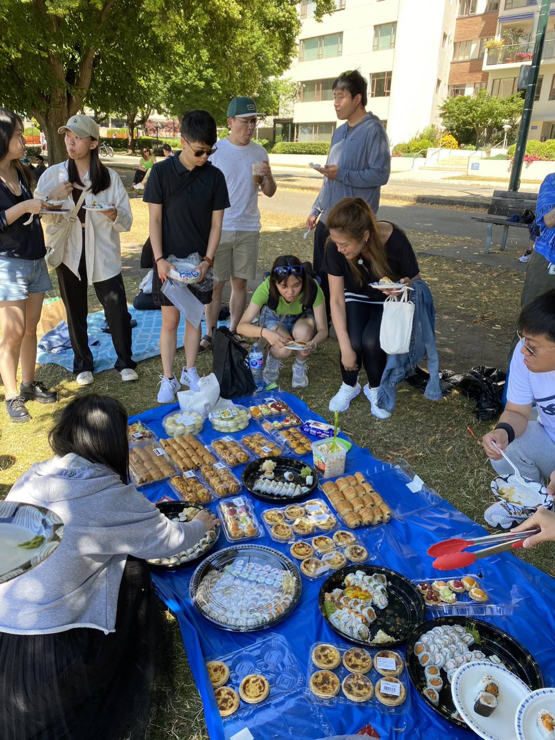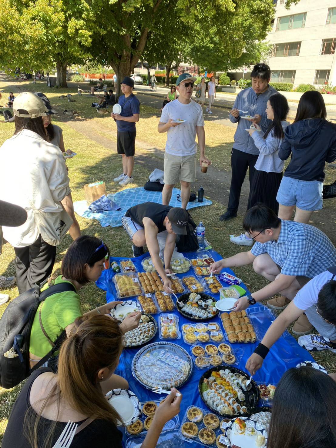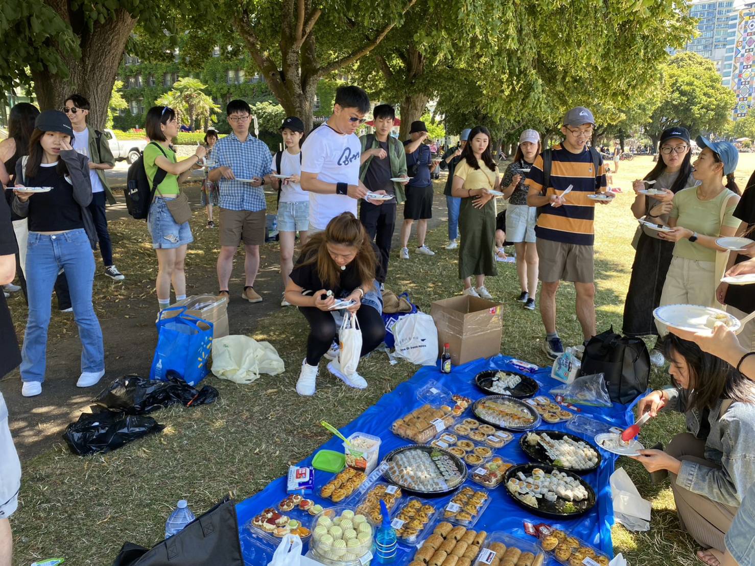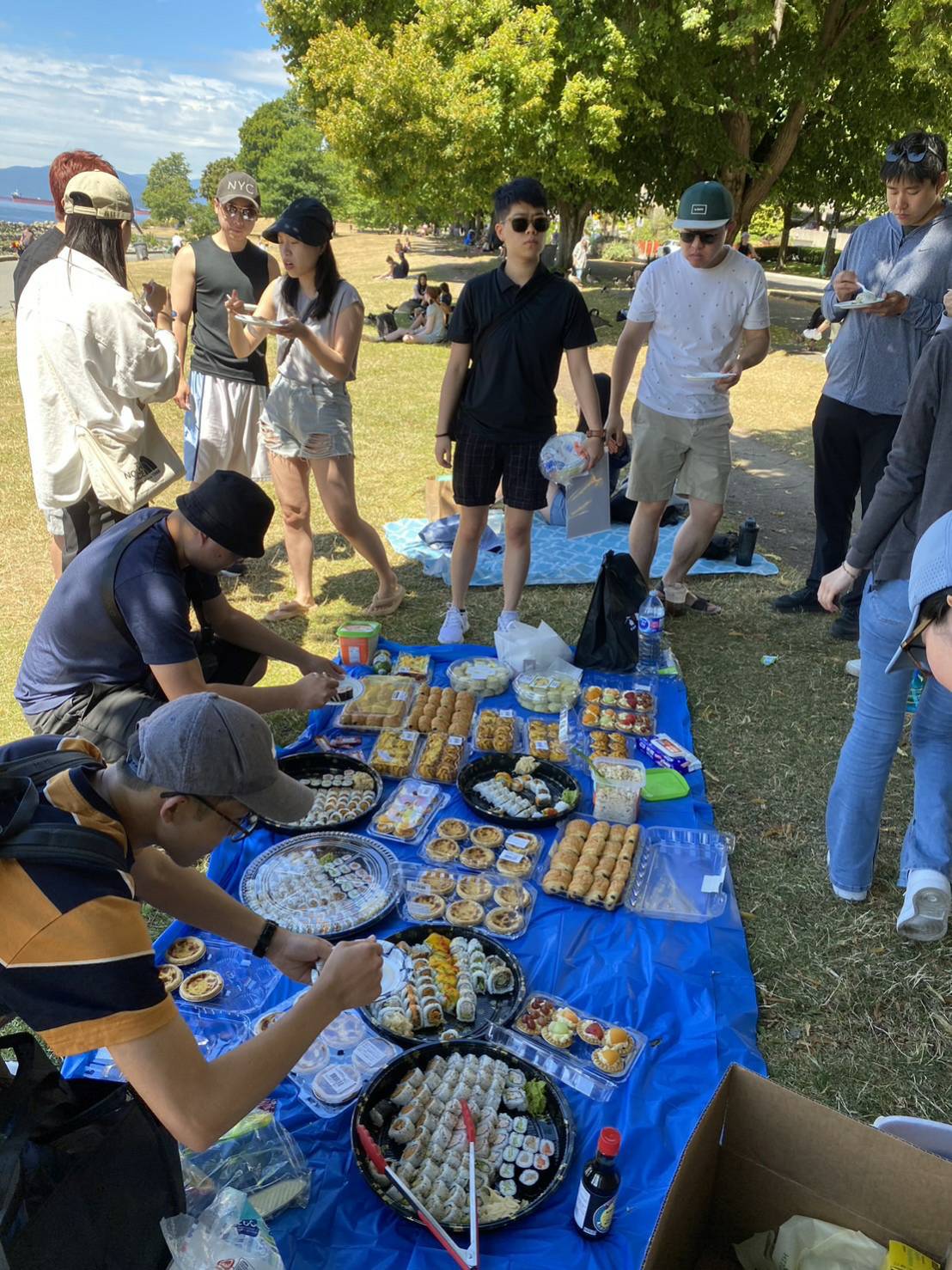 感謝來自大溫地區,四面八方的睿達Family學員們,在7月16日風和日麗的中午,來到市中心English Bay,參加我們7月份舉行的壽司甜點免費吃到飽活動。光是壽司愛琳姊就事先預訂了好多盒,讓大家有吃有拿有放肚子裡,最後準備的點心甜點讓同學通通都帶回家。 這次我們認識了好多新同學新朋友,都是我們睿達學員們帶來的好友,還有在當地加打的學生,這就是我們活動的目的,完全免費,讓來自台灣的同學朋友們,分享生活學業與工作,大家更團結在一起。 讓我們期待下次的免費活動。