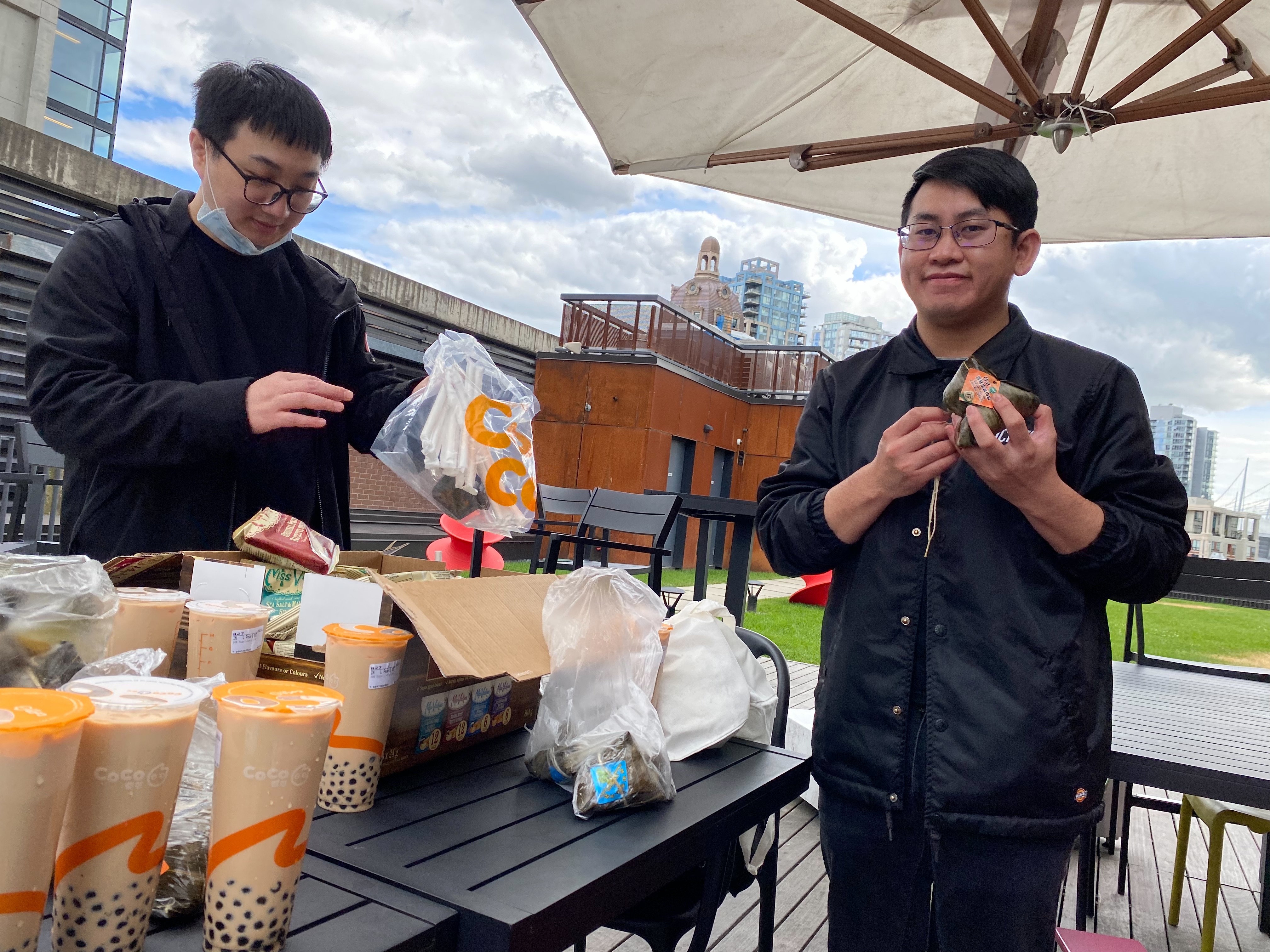 加拿大疫苗施打解封後,第一場中青學員粽子節大會,圓滿歡樂結束了。 這次我們是在加拿大市中心辦公室頂樓舉行,為我們學員準備了好多粽子,飲料,以及各式各樣洋芋片,讓同學免費吃,免費拿。思念台灣嗎?沒關係加拿大始終有我們在! 依照加拿大BC省政府公告,進行安全與分流的戶外聚會,有的同學忍不住當場吃了起來,愛琳姊幫同學們買了好多好多,每位同學都可以將吃吃喝喝全部帶回家。看到我們學生在群組中的留言,永遠都是讓我們最感動的事情,讓我們有一直有為大家服務的勇氣。 我們兔兔學生說: 今天很謝謝愛琳姐的經驗分享和美味的餐點,也謝謝威力的帶路上樓!很高興認識幾位活潑可愛的打拼夥伴,故事會越陳越香,超喜歡這樣的生活分享,再次謝謝愛琳姐讓我們有機會聽到人生故事❤️ 我們新同學Aaron說: 感謝愛琳姊的粽子,好久沒認識新朋友了,很高興認識大家。感謝愛姊的粽子跟珍奶,也學習到各位學長姐寶貴的經驗,今天新加入這個大家庭,以後有什麼問題還請前輩們多多關照了🙏