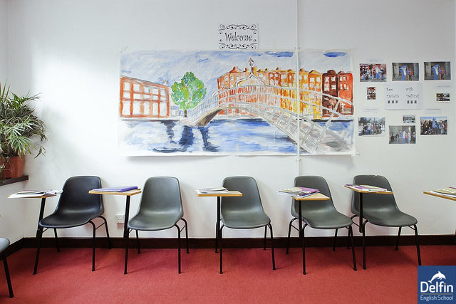 Delfin English School 位於都柏林市中心精華地區,步行10分鐘可到觀光景點Temple Bar,距離400年歷史全球百大都柏林聖三一學院只需15分鐘。校內有33間寬敞明亮教室,提供一般、密集、考試與商業多種課程,從初級到精修級共有7個級數,每班平均12位學生,可選擇彈性上午或下午課程。校內設備完善,如:電腦中心、學生交誼廳、自習中心、學生咖啡廳及小型電影院。課後及週末安排豐富課外活動,如愛爾蘭西岸城市高威、歐洲最高的莫赫懸崖及北愛爾蘭最富盛名的景點巨人堤道。住宿方面有住宿家庭或校外公寓宿舍提供選擇。