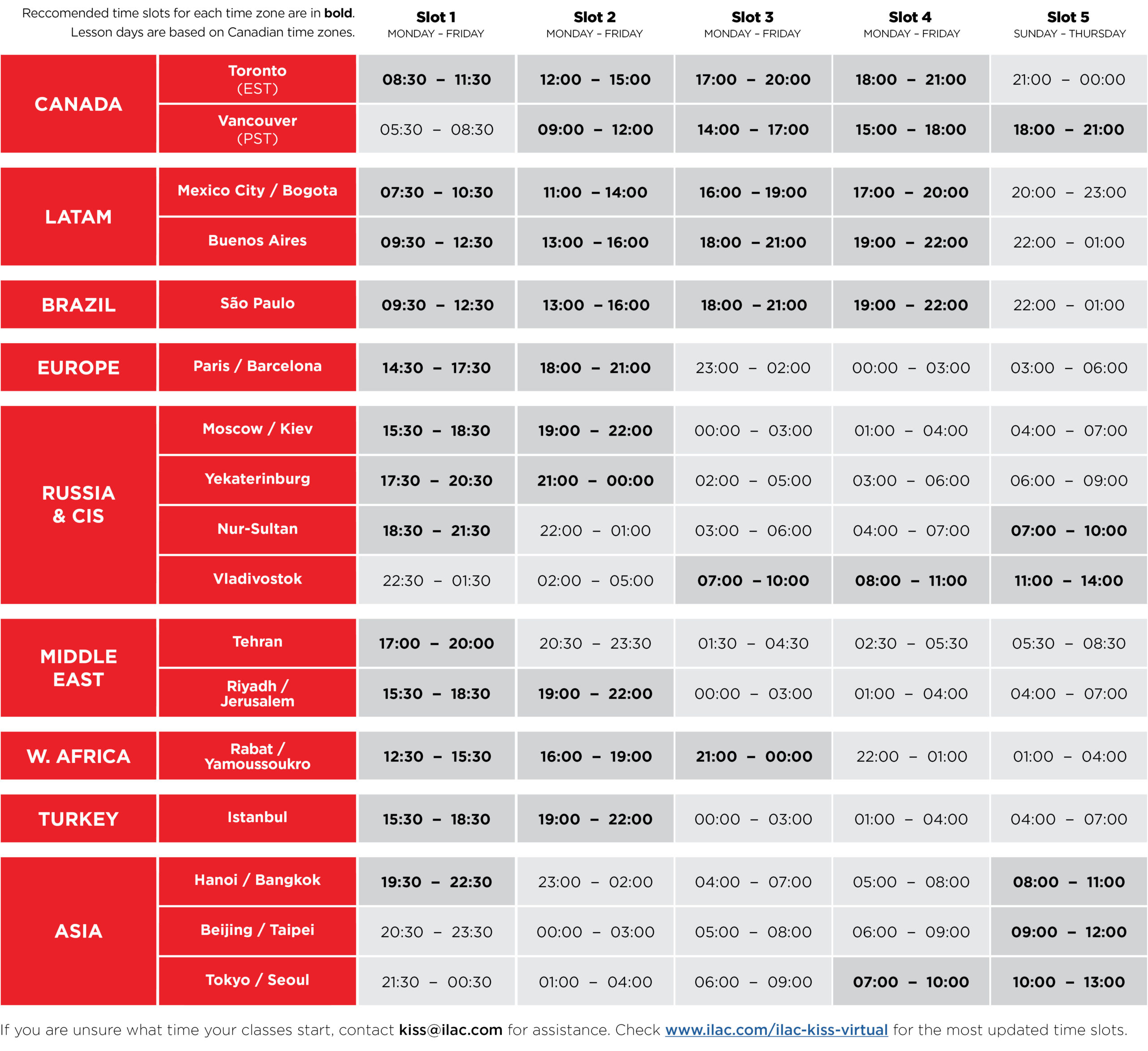 ❓上課時間有哪些選擇?(以下為夏令台灣時間)