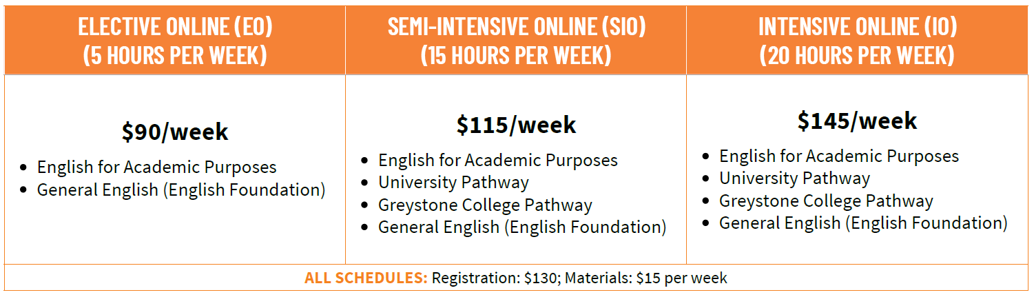| Greystone College Pathway Online 遊學打工銜接課程 | 每四週開課一次 |