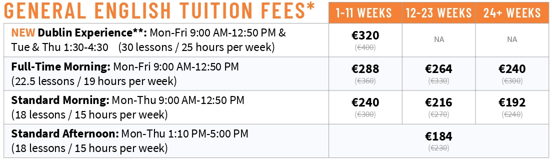 推出全新的密集都柏林體驗課程,每週 25 小時!這門課程結合每週一至週五上午 19 小時的課堂學習,