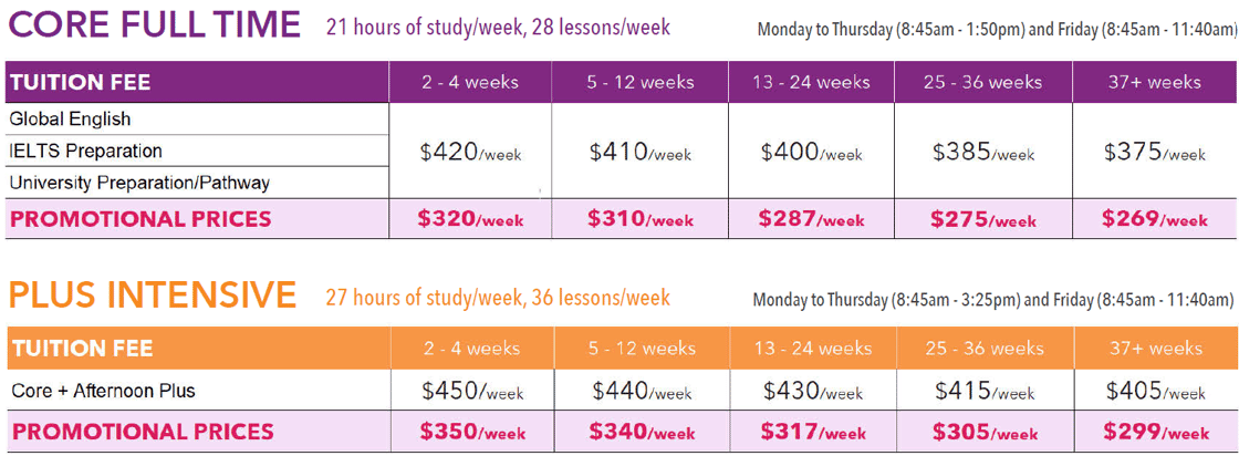 VGC語言課程優惠特別優惠: 4月30日 或之前 - 報名語言(核心)課程 8 週或以上送 $100 活動劵* 6月30日 或之前 - 持打工度假簽證報名語言(核心)課程 4 週或以上免註冊費** |