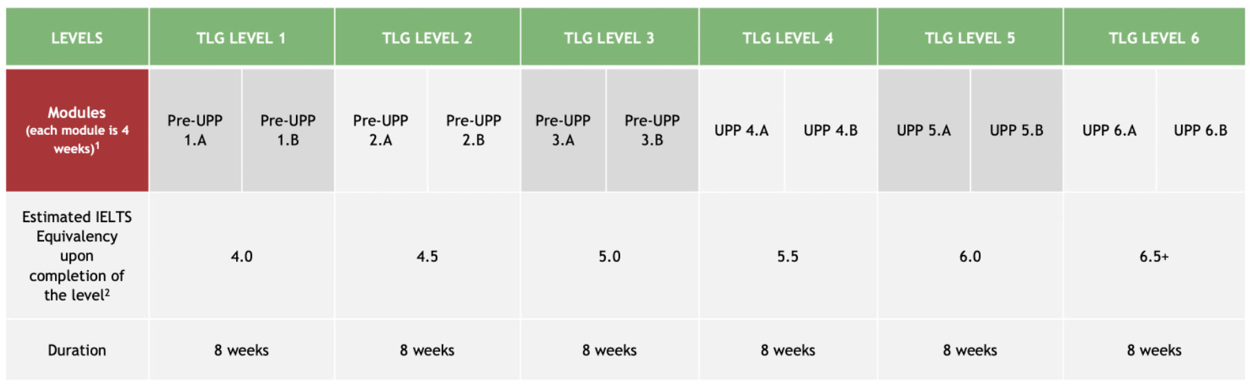 - 一般英語(General English): 目的在幫助學生提高整體英語能力。通過發音、語法和詞彙來增加學信心,幫助您溝通交流,或為您準備學術或工作相關計劃。