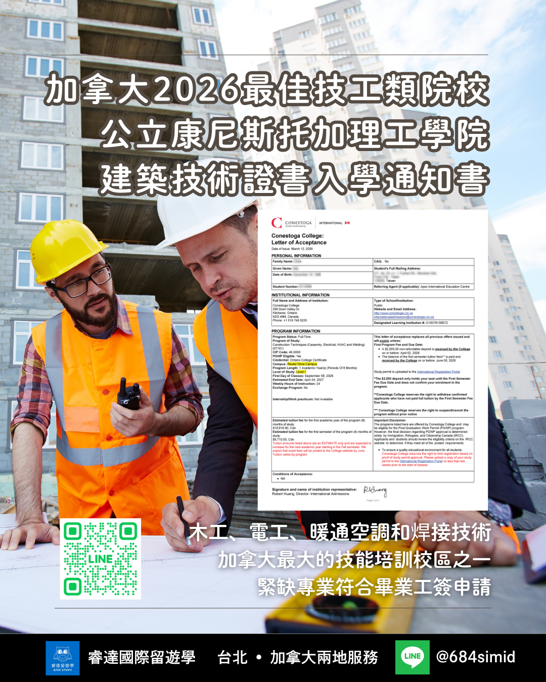 Conestoga College連續被CourseCompare評為加拿大最佳技工類院校。排名評選的理由包括該校的技術增強型學習模式、先進的技工培訓設施以及豐富的實踐學習機會,這些都幫助學生在畢業後順利、高效地融入職場。