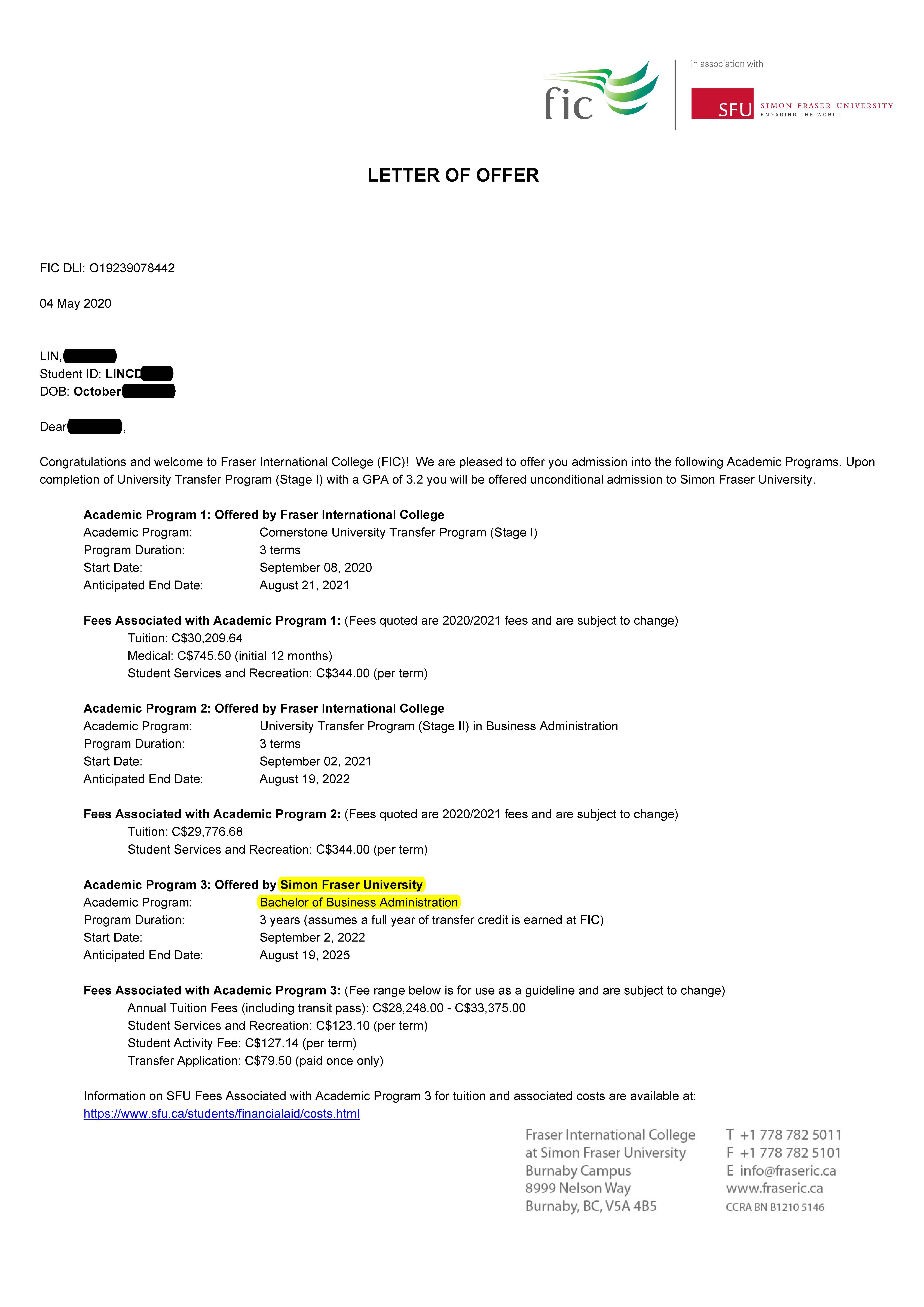 狂賀!又有同學成功被加拿大SFU大學錄取!