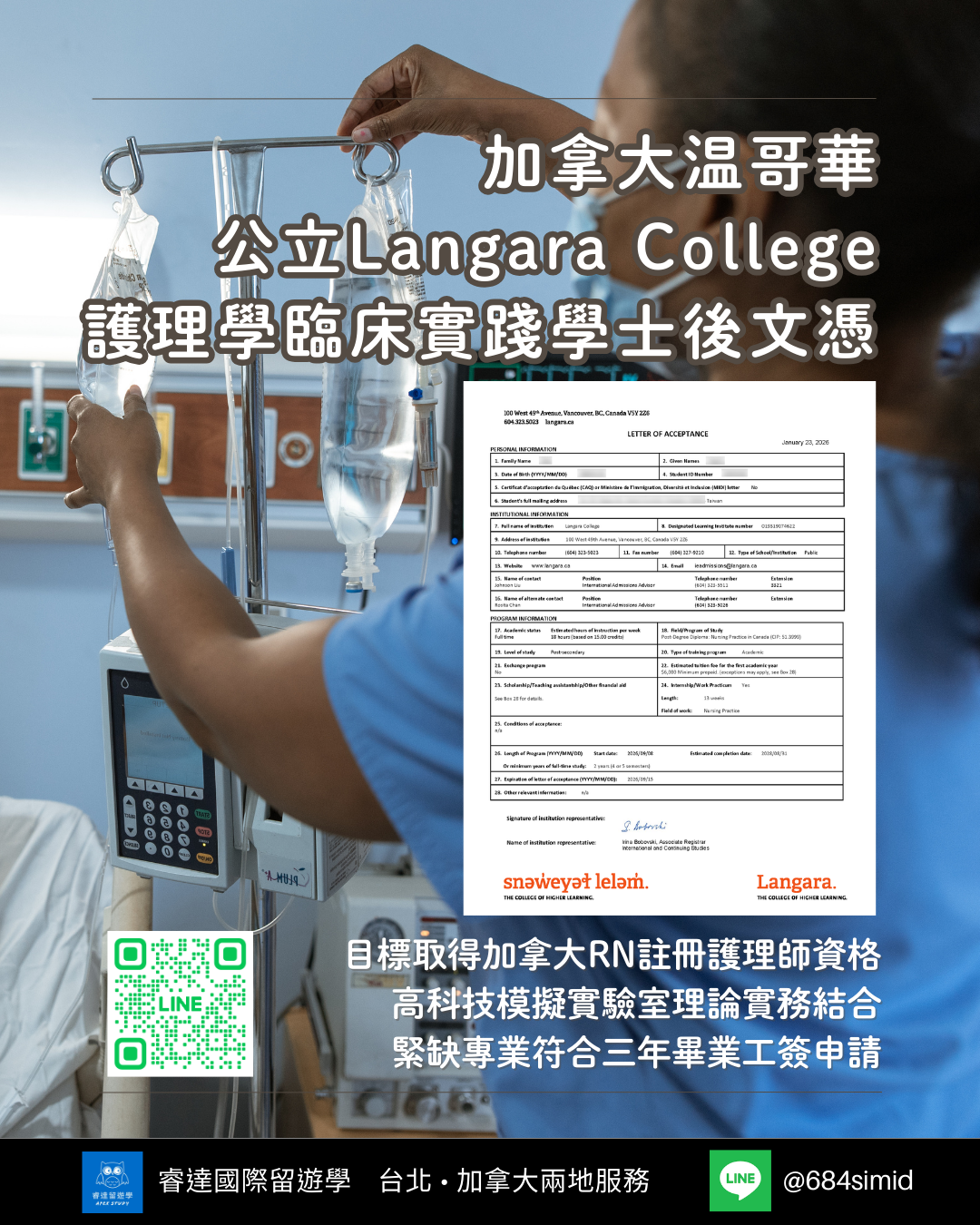 公立蘭加拉學院 (Langara College) 的兩年全日制加拿大護理學臨床實踐學士後文憑課程 (Post-Degree Diploma in Nursing Practice in Canada, PDD NPIC) 專為國際受訓護理師(IEN)設計,目的在幫助他們順利滿足加拿大護理執業資格的要求,邁向護理職業新高峰。