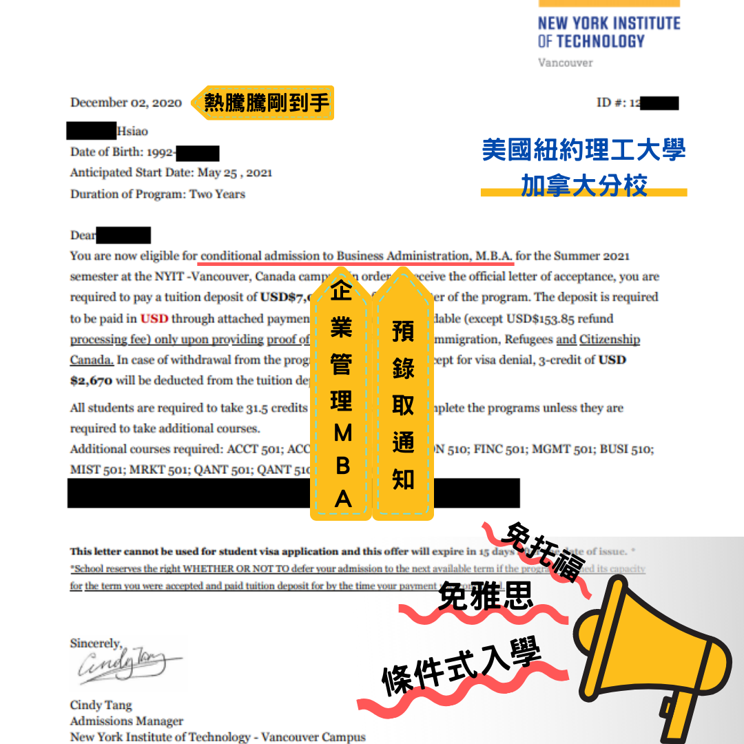 🍁無托福雅思可提出預錄取申請