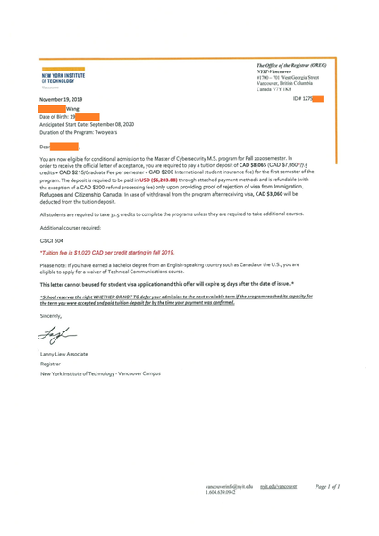 王大哥的碩士入學通知終於到手,NYIT紐約理工學院,網路安全碩士(Master of Science in Cybersecurity)!