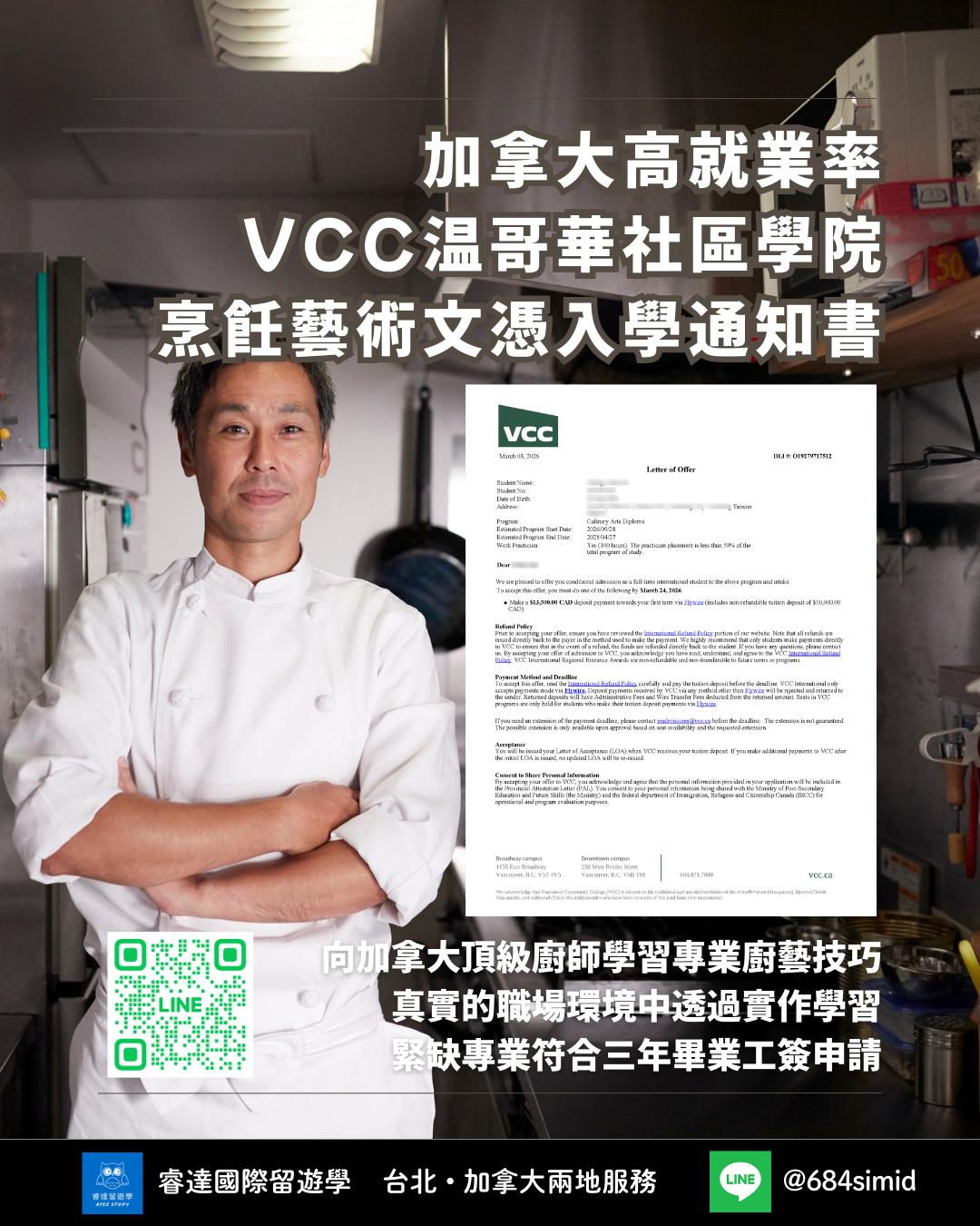 在設備齊全的工業廚房中,向加拿大頂級廚師學習專業商業烹飪的技能和技巧。
