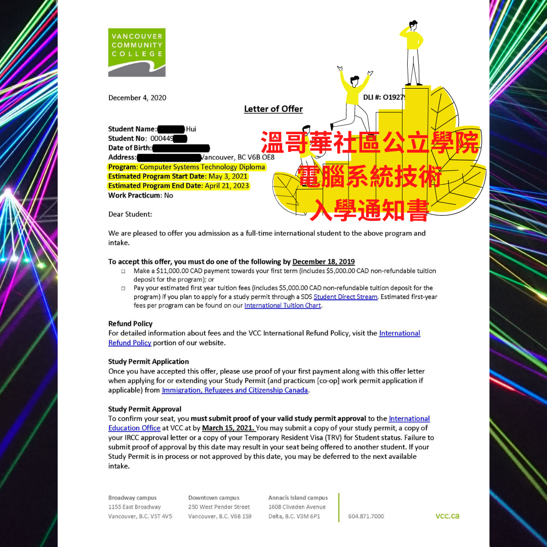 加拿大公立學校入學信拿不停,中青團隊又幫一位學生申請到電腦系統科技課程了!學生立志就是要去加拿大Google,Amazon公司上班啦!
